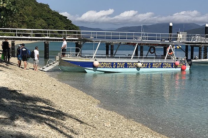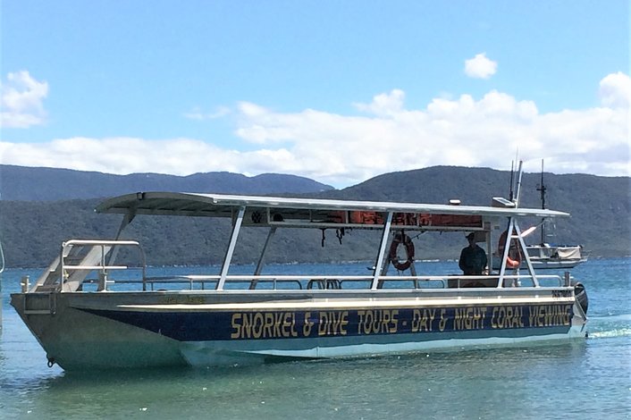 - Glass Bottom Boat departs from the beach outside of the Fitzroy Island Dive Adventure Centre.